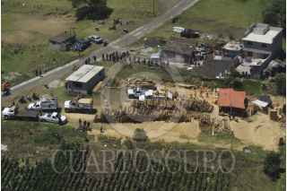 MÉXICO, D.F., 05JUNIO2013.- Vista aérea del operativo que personal de la SSP-DF realizó simultáneamente en 18 aserraderos clandestinos que operaban en San Salvador Cuauhtenco, San Pablo Oztotepec y Santa Ana Tlacotenco en la delegación Milpa Alta. FOTO: SAÚL LÓPEZ / CUARTOSCURO.COM