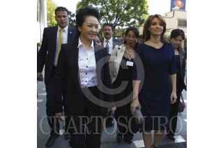 MÉXICO, D.F., 05JUNIO2013.- Angélica Rivera de Peña, esposa del Presidente de México, Enrique Peña Nieto junto a Peng liyuan, Esposa del Presidente de la República Popular China, Xi Jinping durante el recorrido que realizaron por las Instalaciones de Televisa. FOTO: TELEVISA /CUARTOSCURO.COM