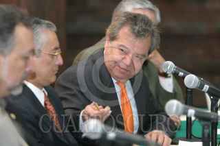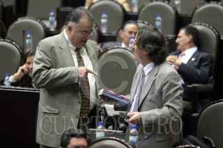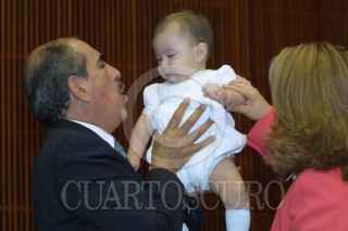 MEXICO, D.F., 07SEPTIEMBRE2005.- Pablo Gómez, Coordinador de la bancada del PRD, juguetea con un bebe de nombre Juan Bernardo Corona, durante la sesión en la Cámara de Diputados. FOTO: Juan Sosa/CUARTOSCURO.COM