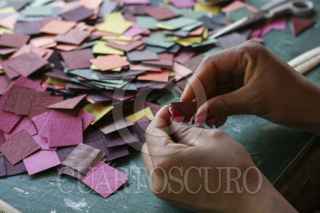 SAN AGUSTÍN ETLA, OAXACA, 06JUNIO2013.- Desde hace siete años el municipio de San Agustín Etla cuenta con un proyecto de reciclado de papel llamado Taller Arte Papel Oaxaca, mismo que fue iniciado por el pintor oaxaqueño, Francisco Toledo, el fin de este espacio es aprovechar los recursos naturales para la creación de papel 100 por ciento puro ya sea para la creación de obras de arte, joyería de papel o cualquier cosa que se le ocurra a quien lo utilice. Enrique Ramírez Castellanos encargado del área de producción, señaló que la creación de estos productos se realiza con materiales como la corteza de árboles, los productos sintéticos dijo, no son utilizados, incluso apuntó, el agua que se utiliza retorna a la naturaleza sin ningún contaminante pues lo que planteó desde el inicio es no dañar a la madre naturaleza. FOTO: ARTURO PÉREZ ALFONSO /CUARTOSCURO.COM