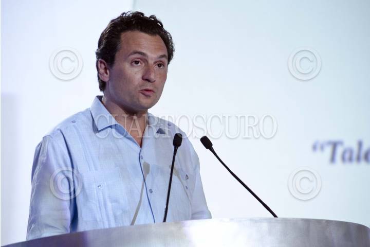 RIVIERA MAYA, QUINTANA ROO, 06JUNIO2013.- Rafael Cantú Ávila, presidente municipal de Solidaridad, Quintana Roo; Carlos Romero Deschamps, líder del STPRM; Emilio Lozoya Austin, director de Petroleos Mexicanos (Pemex); Roberto Borge Angulo, gobernador de Quintana Roo; Pedro Joaquín Coldwell, secretario de Energía; Fernando Ortéga Bernés, Gobernador de Campeche y Carlos Morales Gil, director de Pemex Exploración y Producción y Enrique Ochoa Reza, subsecretario de Hidrocarburos; asistieron a la inauguración el día de ayer por la noche del Congreso Mexicano del Petroleo 2013 (CMP 2013), en el cual se dan cita cientos de empresas mexicanas y extranjeras, así como especialistas e ingenieros para realizar foros y adquirir conocimientos más amplios sobre los hidrocarburos. FOTO: EMILIANO RUVAL / CUARTOSCURO.COM