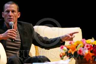 MEXICO, DF 07SEPTIEMBRE2005.- El ciclista 5 veces campeón de el Tour de Francia, Lance Armstrong asistió como invitado al ciclo de conferencias que la Fundación Telmex, ofreció para miles de estudiantes de nivel superior en el auditorio nacional. FOTO: Miguel Dimayuga/CUARTOSCURO.COM