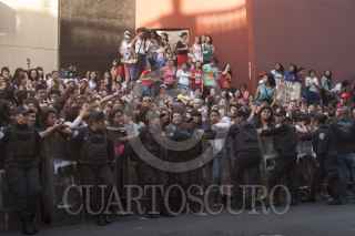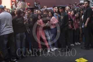 MÉXICO, D.F., 07JUNIO2013.- Cerca de 4 mil fans de la banda de pop británica One Direction, esperaron el arribo del grupo juvenil a las afueras de un hotel sobre Paseo de la Reforma en el marco de sus dos presentaciones que tendrán los días Sábado y Domingo en el Foro Sol. La banda de pop cambió de último momento su estancia a un hotel de Polanco. FOTO: FRANCISCO RODRÍGUEZ /CUARTOSCURO.COM