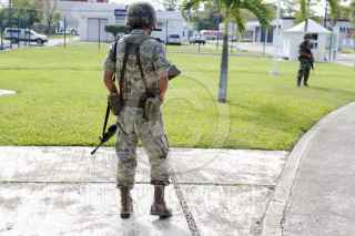 VILLAHERMOSA, TABASCO, 09JUNIO2013.- Elementos del Ejercito Mexicano y Agentes de la Policía Federal Ministerial, resguardaron en las inmediaciones del aeropuerto Internacional capital Carlos A. Rovirosa, donde esperan la llegada de la aeronave que trasladara detenido a José Manuel Saíz Pineda, ex secretario de Finanzas que fue detenido anoche en la ciudad de Reynosa, Tamaulipas cuando intentaba huir del país. FOTO: MARCO POLO GUZMÁN HERNÁNDEZ /CUARTOSCURO.COM