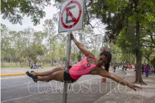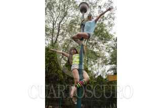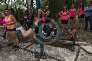MÉXICO, D.F., 09JUNIO2013.- Decenas de jóvenes que practican el "Pole Dance" participaron en el Día Nacional del Pole Urbano, en el Bosque de Chapultepec. FOTO: ISAAC ESQUIVEL / CUARTOSCURO.COM