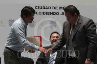 MÉXICO, D.F., 10JUNIO2013.- Los Jefes delegacionales de Cuauhtémoc, Alejandro Fernández, y de Venustiano Carranza, José Manuel Ballesteros, y el secretario de Gobierno, Héctor Serrano, presentaron el “Proyecto Morelos” para anunciar el rescate de esta colonia y del barrio de Tepito con la participación ciudadana en coordinación con Gobierno del Distrito Federal y ambas delegaciones. El acto se llevó a cabo en el antiguo Palacio del Ayuntamiento, sede del Gobierno del Distrito Federal. FOTO: JUAN PABLO ZAMORA /CUARTOSCURO.COM
