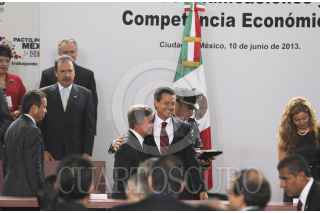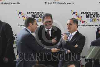MÉXICO, D.F., 10JUNIO2013.- Gerardo Ruiz Esparza, titular de SCT, Francisco Rojas titular de la CFE y Rolando Zapata Bello, gobernador de Yucatan, durante la presentación de la promulgación de la reforma de Telecomunicaciones y Competencia Económica, llevado acabo en el Museo Tecnológico de la Comisión Federal de Electricidad. FOTO: SAÚL LÓPEZ /CUARTOSCURO.COM
