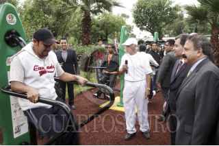 MÉXICO, D.F., 11JUNIO2013.- En las oficinas centrales de la central de abastos, La secretaria de salud pública a cargo de Armando Ahued Ortega inauguró un nuevo gimnasio urbano, los cuales busca fomentar la actividad física entre los habitantes de la cuidad. FOTO: ALEJANDRO NEYRA /CUARTOSCURO.COM