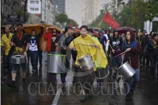 MÉXICO, D.F., 11JUNIO2013.- Jóvenes estudiantes de diferentes Universidades, Organizaciones Sociales, Feministas y Anarquistas; se manifestaron con una marcha en demanda de la liberación de las 22 personas detenidas por la policía capitalina el pasado 10 de junio durante la marcha por el 22 aniversario del halconazo. A pesar de la intensa lluvia y del acompañamiento de granaderos, los manifestantes partieron de la Agencia 50 de la Procuraduría General de Justicia del DF al Zócalo capitalino, en donde terminó con la participaron madres y padres de los jóvenes detenidos. FOTO: ADOLFO VALTIERRA /CUARTOSCURO.COM