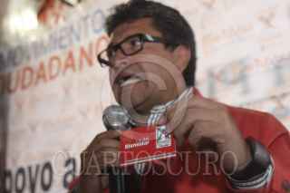 TLAXCALA, TLAXCALA, 12JUNIO2013.- Ricardo Monreal Ávila, dirigente del partido Movimiento Ciudadano, ofreció una conferencia de prensa en la que se afirmó que en la entidad el PRI está reproduciendo el fraudulento caso MONEX, ya que se están repartiendo un aproximado de 150 mil tarjetas con prepago telefónico y con saldo para adquisición de mercancías, como la que sostiene en la mano; anunció que se presentará las denuncias correspondientes ante la Fiscalía Especializada para la Atención de Delitos Electorales FEPADE. FOTO: J. GUADALUPE PÉREZ /CUARTOSCURO.COM