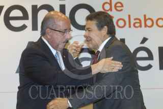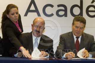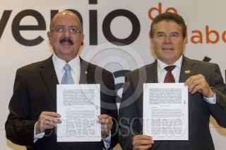 MÉXICO, D.F., 12JUNIO2013.- Rafael López Castañares, titular de ANUIES, y Juan Díaz De La Torre, secretario General del SNTE, firmaron el Primer Convenio General de Colaboración Académica entre esas instituciones. FOTO: JUAN PABLO ZAMORA /CUARTOSCURO.COM
