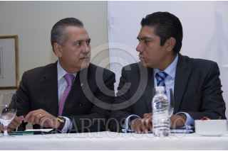 MÉXICO, D.F., 12JUNIO2013.- Emilio Gamboa Patrón, PRI; y Luis Alberto Villareal, PAN; coordinadores de sus respectivas bancadas en la Cámara de Diputados y en la Senadores, se reunieron para discutir los temas de la agenda legislativa y el próximo periodo extraordinario de sesiones. FOTO: ADOLFO VALTIERRA /CUARTOSCURO.COM