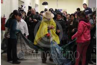 MÉXICO, D.F., 12JUNIO2013.- Familiares de los jóvenes detenidos el pasado 10 de Junio en los disturbios en el zócalo capitalino, ingresaron a la fuerza al interior de la agencia 50 donde se encontraban declarando los detenidos. FOTO: SAÚL LÓPEZ /CUARTOSCURO.COM