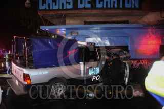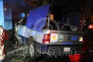 MÉXICO D.F. 15JUNIO2013.- Una patrulla del agrupamiento de Granaderos de la SSP, se impacto contra la cortina de un local comercial al perder el control de la unidad, en la curva de la calle Topacio y Fray Servando en la colonia Merced Centro, del accidete, dos elemetos resultaron lesionados de los cuales solo uno amerito ser trasladado a un Hospital para su atención. FOTO: LUIS CARBAYO /CUARTOSCURO.COM
