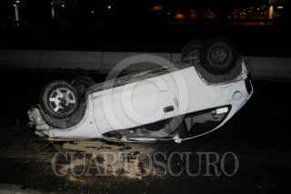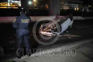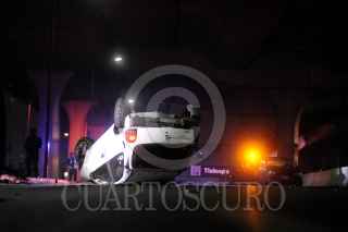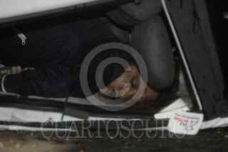 TLALNEPANTLA, ESTADO DE MÉXICO, 15JUNIO2013.- El productor de noticieros de Grupo ACIR, Omar Josue Ramos Arcos, perdio la vida esta madrugada al volcar sobre periferico a la altura de la calle Viveros de Asis, colonia Viveros de la Loma Municipio de Tlalnepantla. Gracias a una credencial de esta empresa, fue identificado el cadaver que quedo al interior del auto volcado de la marca Chevrolet tipo Chevy de color blanco en el que viajaba. En dicho accidente se vio involucrado un auto del mismo modelo. FOTO: LUIS CARBAYO /CUARTOSCURO.COM