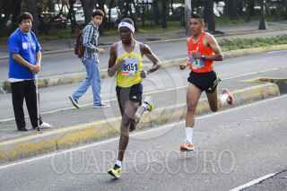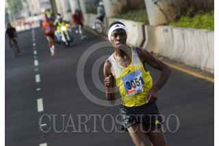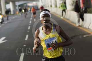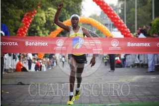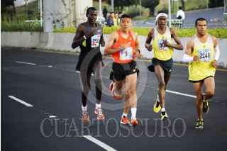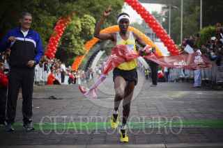 MÉXICO, D.F., 16JUNIO2013.- Partiendo de Periférico, a la altura de perisur, rumbo al Bosque de Tlalpan y de regreso, se efectuó la Carrera del Día del Padre, el primer lugar, por segundo año consecutivo, fue para el keniano Julius Keter. El competidor mexicano José Antonio Uribe llegó en segundo lugar. FOTO: PEDRO ANZA / CUARTOSCURO.COM