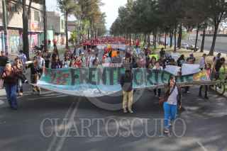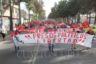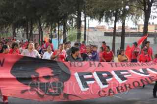 MÉXICO, D.F., 17JUNIO2013.- Integrantes del Frente Popular Francisco Villa Independiente, marcharon de la avenida Tlahuac hacia el reclusorio oriente, en apoyo a los siete jóvenes detenidos por granaderos de la SSP-DF durante los disturbios del pasado 10 de Junio en el zócalo capitalino. FOTO: SAÚL LÓPEZ /CUARTOSCURO.COM