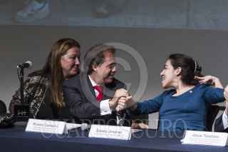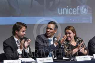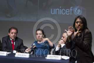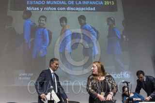 MÉXICO, D.F., 18JUNIO2013.- Isabel Crowley, representante de Unicef en nuestro país, Ricardo Camacho, representante del Sistema Nacional del DIF Nacional, y Sandra Jiménez, miembro del consejo consultivo de UNICEF en México, durante la presentación del Informe "Estado Mundial de la Infancia 2013, niñas y niños con discapacidad", en el Museo Memoria y Tolerancia. FOTO: ISAAC ESQUIVEL /CUARTOSCURO.COM