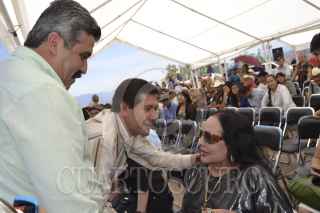 VILLANUEVA, ZACATECAS, 19JUNIO2013.- La Familia Aguilar Jiménez ofreció con motivo del sexto aniversario luctuoso de Don Antonio Aguilar Barraza. Familiares y amigos de doña Flor Silvestre, Pepe y Toño Aguilar, estuvieron presentes durante la ceremonia litúrgica realizada a un costado del mausoleo en donde reposan los restos del Charro de México. El Secretario General de Gobierno, Francisco Escobedo Villegas, acudió, en representación del Gobernador Miguel Alonso Reyes a la ceremonia. FOTO: CUARTOSCURO.COM