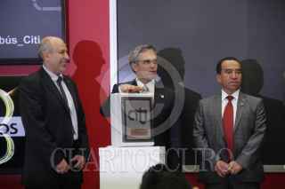MÉXICO, D.F., 20JUNIO2013.- El jefe de gobierno del Distrito Federal, Miguel Ángel Mancera, encabezó los festejos del octavo aniversario del Metrobús. Durante este evento adelantó que la meta es ampliar la red de este sistema de transporte a seis líneas, una más de la que se está construyendo actualmente. Durante su discurso, Mancera Espinosa recordó el inicio del proyecto Metrobús tuvo lugar en 2005, durante la administración de Andrés Manuel López Obrador; continuada en el sexenio de Marcelo Ebrard y, ahora, este año se está construyendo la Línea 5, que correrá de la Alameda Oriente al Metro Rosario. Este sistema de transporte se ha convertido en una marca registrada de la ciudad de México. FOTO: JUAN PABLO ZAMORA /CUARTOSCURO.COM