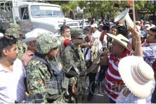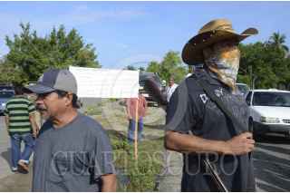 SAN LUIS LA LOMA, GUERRERO, 20JUNIO2013.- Pobladores y dirigentes comunitarios de distintas partes presentaron hoy un “Grupo de Autoprotección Ciudadana” que resguardará a la población ante los ataques de bandas delictivas que mantienen bajo acoso a las comunidades rurales. El nuevo grupo de autodefensa, que estará comandado por Azael Granados, fue presentado aquí este mediodía por el activista Leopoldo Soberanis Hernández, coordinador de la Alianza de Derechos Humanos Guerrero Unido. Soberanis Hernández dijo que ante la indolencia de los tres órdenes de gobierno, que se han negado a actuar contra la delincuencia, en coordinación con la Unión de Pueblos y Comunidades del Estado de Guerrero (UPOEG), que coordina Bruno Plácido Valerio, están en proceso de formación nuevos grupos de autodefensa en municipios como Coyuca, Atoyac, San Jerónimo, Petatlán, Zihuatanejo y La Unión, en la región de Costa Grande, así como en la región de Tierra Caliente que colinda con Michoacán, “que ha sido lastimada profundamente por la violencia”. Como protesta ante la creciente inseguridad, desde las 08:00 horas de hoy diferentes comunidades mantienen bloqueos intermitentes de la carretera federal Acapulco-Zihuatanejo, donde mantienen cierres constantes en diversos puntos geográficos de los municipios de Tecpan de Galeana, San Jerónimo y Coyuca de Benítez. Este corresponsal hizo un recorrido por la carretera Acapulco-Zihuatanejo, donde constató por lo menos media docena de bloqueos intermitentes en El Llano, San Luis La Loma, San Luis San Pedro, Nuxco, El Veinte y en algunas comunidades de la Sierra Madre del Sur. FOTO: BERNANDINO HERNÁNDEZ /CUARTOSCURO.COM