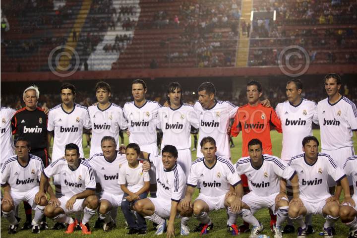 BOCA DEL RÍO, VERACRUZ, 20JUNIO2013.- Acciones del encuentro solidario entre las estrellas de los Tiburones Rojos del Veracruz y el Club de Futbol Real Madrid, quienes golearon al equipo local 6 goles a 1. El delantero merengue, Luis Figo y el entrenador visitante, Hugo Sánchez, fueron los más ovacionados por parte del equipo español. A su vez los jugadores escualos Antonio Carlos Santos, Omar Palma y Ángel "Matute" Morales se llevaron los aplausos de los aficionados que aguantaron una torrencial lluvia. FOTO: FÉLIX MÁRQUEZ /CUARTOSCURO.COM