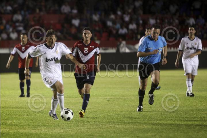 BOCA DEL RÍO, VERACRUZ, 20JUNIO2013.- Acciones del encuentro solidario entre las estrellas de los Tiburones Rojos del Veracruz y el Club de Futbol Real Madrid, quienes golearon al equipo local 6 goles a 1. El delantero merengue, Luis Figo y el entrenador visitante, Hugo Sánchez, fueron los más ovacionados por parte del equipo español. A su vez los jugadores escualos Antonio Carlos Santos, Omar Palma y Ángel "Matute" Morales se llevaron los aplausos de los aficionados que aguantaron una torrencial lluvia. FOTO: FÉLIX MÁRQUEZ /CUARTOSCURO.COM