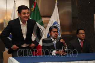 MÉXICO D.F. 20JUNIO2013.- Jorge Luis Preciado, coordinador de la bancada panista en el Senado, acompañado del vicecoordinador José María Martínez, y el contador Luis Canuto, ofrecieron conferencia de prensa para dar los pormenores de la toma de la llamada Torre Azul, donde se encuentran las oficinas administrativas de este grupo parlamentario. FOTO: JUAN PABLO ZAMORA/CUARTOSCURO.COM