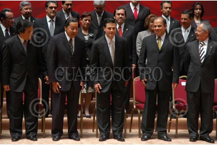 TOLUCA, ESTADO DE MÉXICO, 15SEPTIEMBRE2005.- Enrique Peña Nieto, gobernadro del Estado, saluda a un cadete al salir de su toma de protesta en el teatro Morelos. FOTO: Iván Stephens/CUARTOSCURO.COM