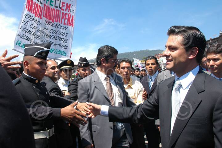 TOLUCA, ESTADO DE MÉXICO, 15SEPTIEMBRE2005.- Enrique Peña Nieto, gobernadro del Estado, saluda a un cadete al salir de su toma de protesta en el teatro Morelos. FOTO: Iván Stephens/CUARTOSCURO.COM