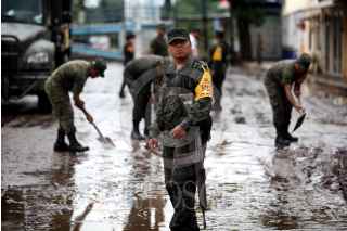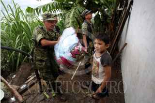 URSULO GALVÁN, VERACRUZ, 21JUNIO2013.- Cientos de habitantes se encuentran damnificados debido al desbordamiento del río Actopan lo que generó una fuerte inundación dejando incontables perdidas materiales. Al lugar arribaron elementos del Ejercito Mexicano, Secretaría de Marina y SSP quienes evacuaron a los lugareños y realizaron trabajos de limpieza tras el paso de la tormenta tropical Barry. FOTO: FÉLIX MÁRQUEZ /CUARTOSCURO.COM