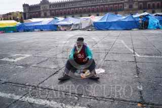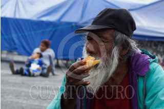 MÉXICO, D.F., 22JUNIO2013.- Una viejo, sentado en la plancha del Zócalo, observa pasar observa pasar a los transeuntes mientras disfruta un taco. FOTO: PEDRO ANZA /CUARTOSCURO.COM