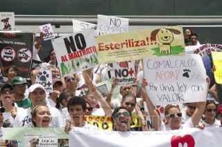 VILLAHERMOSA, TABASCO, 23JUNIO2013.- Al menos dos centenar de pobladores de esta capital marcharon en favor de que se instaure una ley que proteja la vida animal; caminaron por céntricas calles hasta llegar al H. Congreso local para exigir vida digna. En esta marcha participaron las asociaciones Mupra, Una Mejor Vida A.C., Probian y Esperanza A.C. todos los inconformes llevaban consignas y en su caminata pedían respeto para la vida animal. FOTO: MARCO POLO GUZMÁN HERNÁNDEZ/CUARTOSCURO.COM