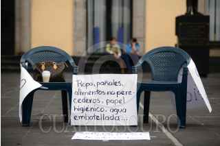 XALAPA, VERACRUZ, 23JUNIO2013.- Habitantes del municipio de Úrsulo Galván se trasladaron a la capital del estado para instalar un centro de acopio debido a las afectaciones que dejó la tormenta tropical Barry a su paso por Veracruz; explicaron que por falta de apoyo por parte del Gobierno del estado, se ven en la necesidad de trasladarse a solicitar ayuda de la ciudadanía xalapeña, lo cual afecta aún más a su economía ya que no cuentan con el dinero suficiente para poder realizar esta acción en los próximos días. También recaudaron víveres para los municipios de Naranjos y Cempoala con ayuda de organizaciones civiles y activistas locales. FOTO: RUBEN ESPINOSA / CUARTOSCURO.COM