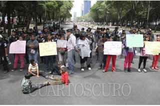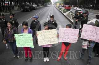 MÉXICO, D.F., 24JUNIO2013.- Familiares de 9 personas detenidas en un operativo realizado el 17 de mayo por elementos de la Policía Estatal, Federal y Ejército Mexicano en Ciudad Nezahualcoyotl, bloquearon el paseo de la reforma a la altura de la Procuraduría General de Justicia (PGR), en demanda de una audiencia con el procurador de la república "ya que sus familiares fueron detenidos injustamente". FOTO: ADOLFO VALTIERRA /CUARTOSCURO.COM