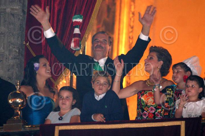 MEXICO, D.F., 15SEPTIEMBRE2005.- Aspecto de la berbena popular que se vivió en la plancha del Zócalo durante el grito de la Independecia. FOTO: Moisés Pablo/CUARTOSCURO.COM