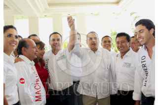 CANCÚN, QUINTANA ROO, 25JUNIO2013.-Manlio Fabio Beltrones, líder de la bancada priista en la Cámara de Diputados, estuvo en esta ciudad para apoyar al candidato del PRI a la presidencia de Benito Juárez, Paul Carrillo asi como a los candidatos a diputados; el líder de la bancada también se reunió con empresarios de esta ciudad. FOTO: ELIZABETH RUIZ /CUARTOSCURO.COM