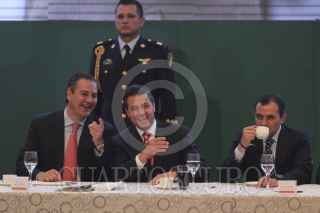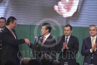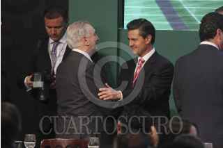 MÉXICO, D.F., 25JUNIO2013.- Joaquín Gamboa Pascoe, líder de la CTM, y Enrique Peña Nieto, Presidente de México, al finalizar a la 31 Asamblea General Ordinaria del Consejo Coordinador Empresarial. FOTO: SAÚL LÓPEZ /CUARTOSCURO.COM