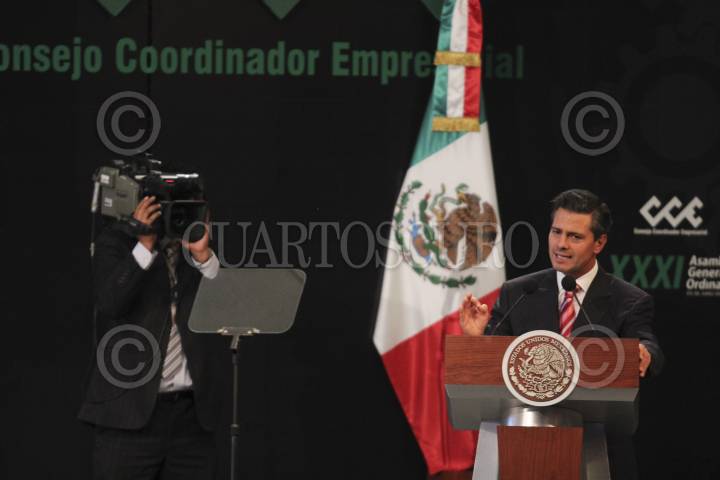 MÉXICO, D.F., 25JUNIO2013.- Joaquín Gamboa Pascoe, líder de la CTM, y Enrique Peña Nieto, Presidente de México, al finalizar a la 31 Asamblea General Ordinaria del Consejo Coordinador Empresarial. FOTO: SAÚL LÓPEZ /CUARTOSCURO.COM