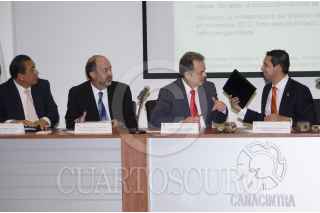 MÉXICO, D.F., 24JUNIO2013.- Pedro Joaquín Coldwell, Secretario de Energía explica la Estratégia de Gas Natural para el País, previo a la firma de acuerdo de colaboración con la Cámara Nacional de la Industria de Transformación (Canacitra) encabezada por Rodrígo Alpízar Vallejo. FOTO: EMILIANO RUVAL / CUARTOSCURO.COM