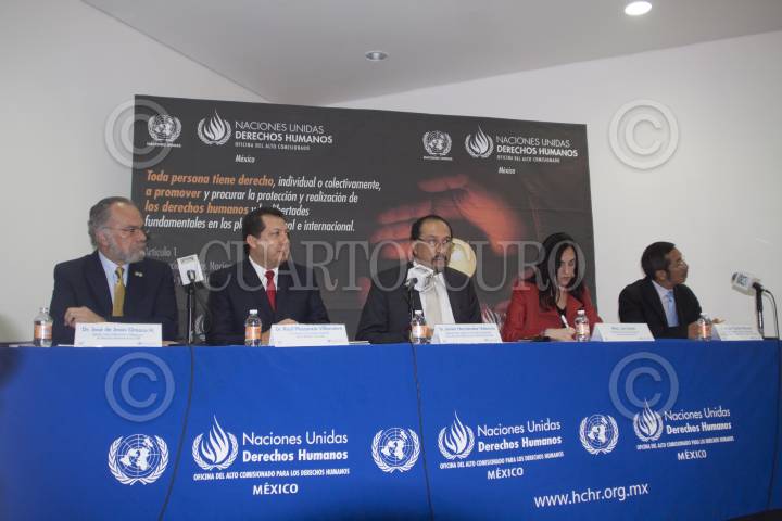 MÉXICO, D.F., 26JUNIO2013.- Raúl Plascencia Villanueva, presidente de la Comisión Nacional de Derechos Humanos y Javier Hernández Valencia, representante en México de la Alta Comisionada de las Naciones Unidas por los Derechos Humanos, durante la presentación sobre la situación de las y los defensores de derechos humanos en México presentado por la oficina del Alto Comisionado de la ONU, en Casa Lamm. FOTO: MOISÉS PABLO / CUARTOSCURO.COM