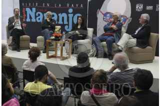 MÉXICO, D.F., 27JUNIO2013.- Se realizó una mesa redonda sobre la caricatura política de Rogelio Naranjo "Vivir en la Raya el arte de Rogelio Naranjo" en el Centro Cultural Universitario Tlatelolco. Asistieron Juan Villoro, Angelica Abelleyra, Armando Bartra y Javier Solorzano. FOTO: MOISÉS PABLO /CUARTOSCURO.COM