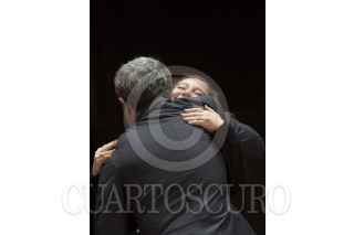MÉXICO, D.F., 28JUNIO2013.- Valentina Rascón Barajas, beneficiaria de Prepa Sí, abraza al Jefe de Gobierno Miguel Ángel Mancera al terminar el evento del aniversario del programa Prepa Sí, en el Antiguo Palacio del Ayuntamiento. FOTO: MOISÉS PABLO /CUARTOSCURO.COM