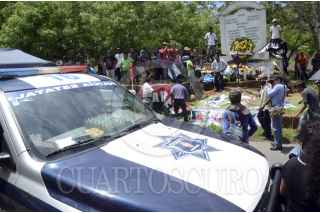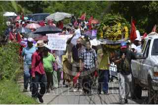 COYUCA DE BENÍTEZ, GUERRERO, 28JUNIO2013.- Aproximadamente 500 personas de diversas agrupaciones campesinas, magisteriales y sociales, participaron en la marcha en memoria de los 17 campesinos que fueron asesinados por un retén instalado por la policía motorizada donde dispararon a mansalva contra el contingente que se desplazaba en una camioneta de redilas después de participar en un mitin en Atoyac de Álvarez el 28 de Junio de 1995. FOTO: BERNANDINO HERNANDEZ / CUARTOSCURO.COM