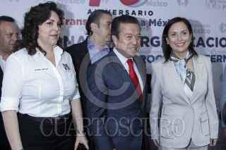 MÉXICO, D.F., 30JUNIO2013.- Ivonne Ortega, Secretaria General del PRI junto a Cesar Camacho Quiroz, Presidente Nacional del PRI durante la entrega de constancia a Cristina Diaz Salazar como Secretaria General de la Confederación Nacional de Organizaciones Populares (CNOP). FOTO: ENRIQUE ORDÓÑEZ /CUARTOSCURO.COM