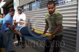 VILLAHERMOSA, TABASCO, 01JULIO2013.- Dos mujeres resultaron con graves heridas y tres más con lesiones cuando un trailer que estaba sin frenos y sin el chófer se proyecto contra las féminas cuando esperaban a las afueras de la tienda departamental Elektra sucursal Parrilla. En los hechos registrados sobre el kilómetro doce de la carretera interéstatal Villahermosa-Teapa, también fue comisionado un vehículo compacto; en las imagen personal de la Cruz Roja atienden a los lesionados y heridos. FOTO: MARCO POLO GUZMÁN HERNÁNDEZ /CUARTOSCURO.COM