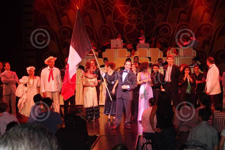 MEXICO D.F. 16SEPTIEMBRE2005.- Los actores de la obra Bésame Mucho, acompañados del público, dieron el tradicional Grito de Independencia al término de la función de este 15 de Septiembre. FOTO: Elena Mendoza/OCESA/CUARTOSCURO.COM