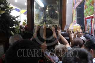 PUEBLA, PUEBLA, 01JULIO2013.- Cientos de feligreses acudieron al templo de Santa Mónica a visitar al "Señor de las Maravillas" en su día, una de las mas antigüas y sin duda la imagen religiosa mas venerada de la ciudad debido a la cantidad de milagros realizados. FOTO: HILDA RIOS /CUARTOSCURO.COM