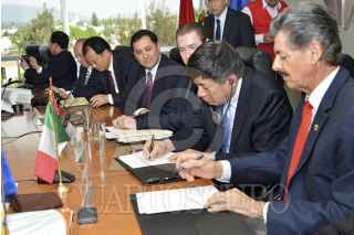 ZAPOPAN, JALISCO 01JULIO2013.- El día hoy, el Consejo Regulador del Tequila, A.C. (CRT) en la figura de su consejo directivo ha sostenido una reunión con una delegación de la Administración General de Supervisión a la Calidad, Inspección y Cuarentena de la República Popular de China (AQSIQ por sus siglas en inglés). Durante el encuentro se firmó la minuta de trabajo correspondiente con acuerdos específicos de colaboración e intercambio de información entre ambas instituciones. Asimismo el documentó firmado por Wu Jin Sheng, director general del departamento de Ciencia y Tecnología, y Miguel Ángel Domínguez Morales, presidente del CRT, refrenda el compromiso hacia la promoción de las indicaciones geográficas como un modelo generador de desarrollo y bienestar económico y social para las regiones que las conforman. FOTO CONSEJO REGULADOR DEL TEQUILA /CUARTOSCURO.COM