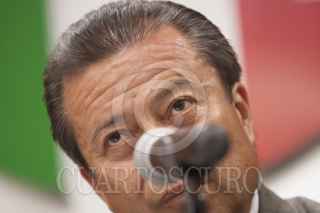 MÉXICO, D.F., 01JULIO2013.- César Camacho Quiróz, presidente nacional del Partido Revolucionario Institucional (PRI), denunció que el Partido Acción Nacional desvió 1,350 millones de pesos del erario de Baja California para favorecer campañas del PAN. FOTO: IVÁN STEPHENS /CUARTOSCURO.COM